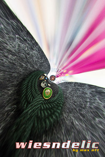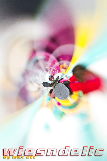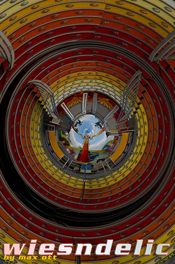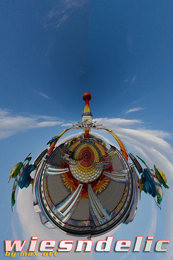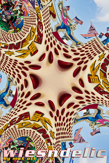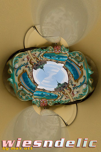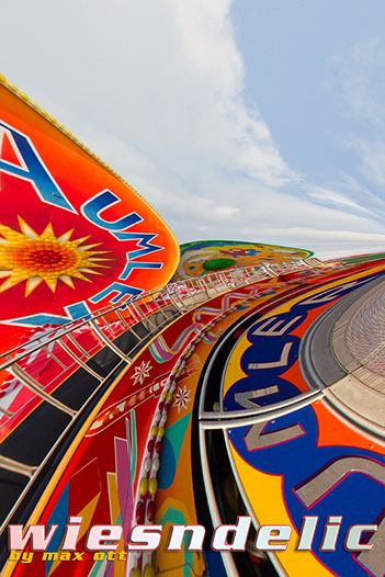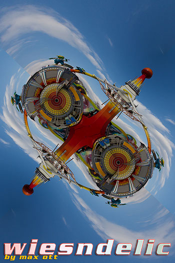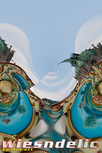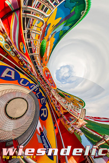 Max Ott gelingt es in seine künstlerisch bearbeiteten Fotos diesen Rausch trefflich festzuhalten. Es verschwimmen die Grenzen von Wirklichkeit und Traum, von Himmel und Erde, von Oben und Unten. Es bedarf keiner Drogen, das Bier einmal ausgenommen, um diesen psychodelischen Wahn in den Bildern von Max Ott nach zu vollziehen, es genügt die Wiesn und ihren Rausch zu kennen. Otts „Wiesndelic“ ist somit das bildhaft gewordene Gefühl des perfekten Rausches, den eben nur das Oktoberfest mit all seinen Facetten zu entfachen vermag.